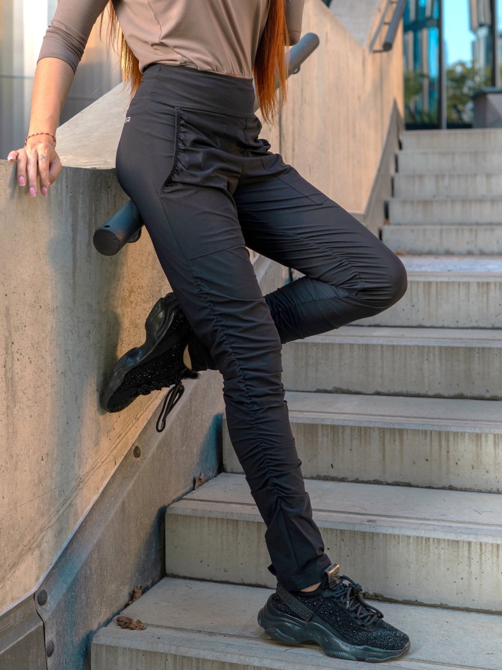 Dámské funkční elastické sportovní kalhoty černé EK933