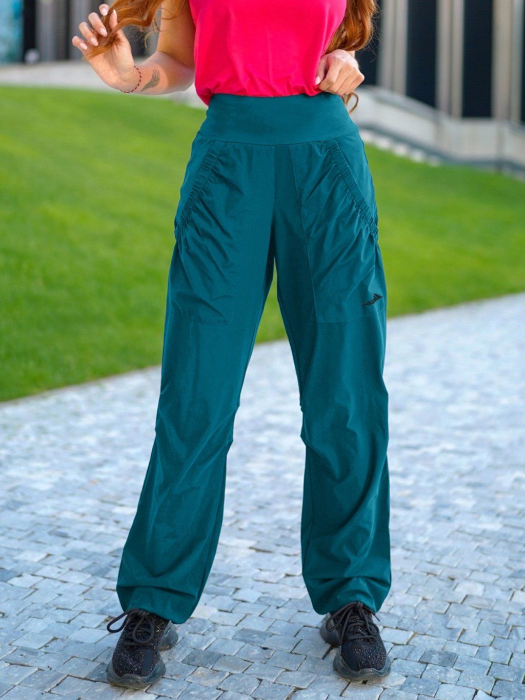 Dámske funkčné elastické športové nohavice petrolejové EK930
