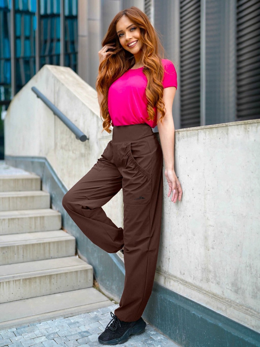Dámské funkční elastické sportovní kalhoty hnědé EK930