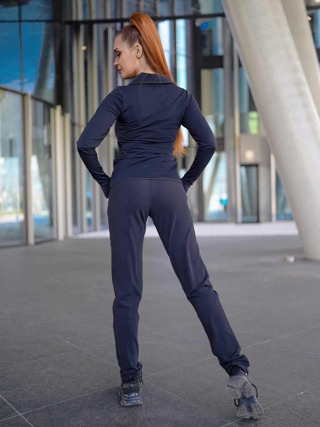 Dámské jemně zateplené funkční elastické sportovní kalhoty černé ZK721