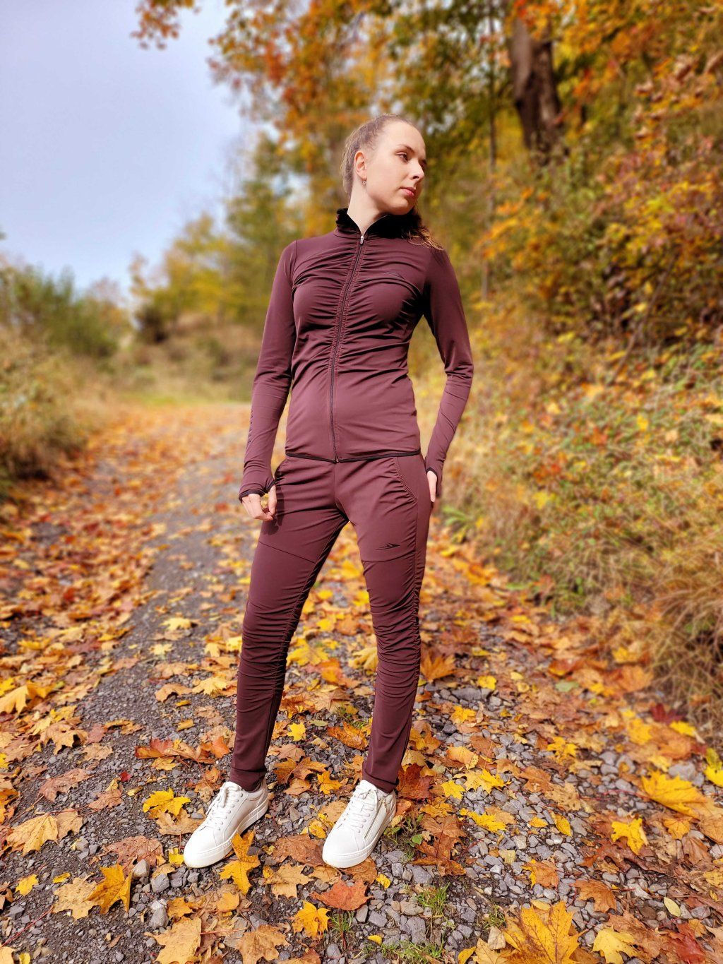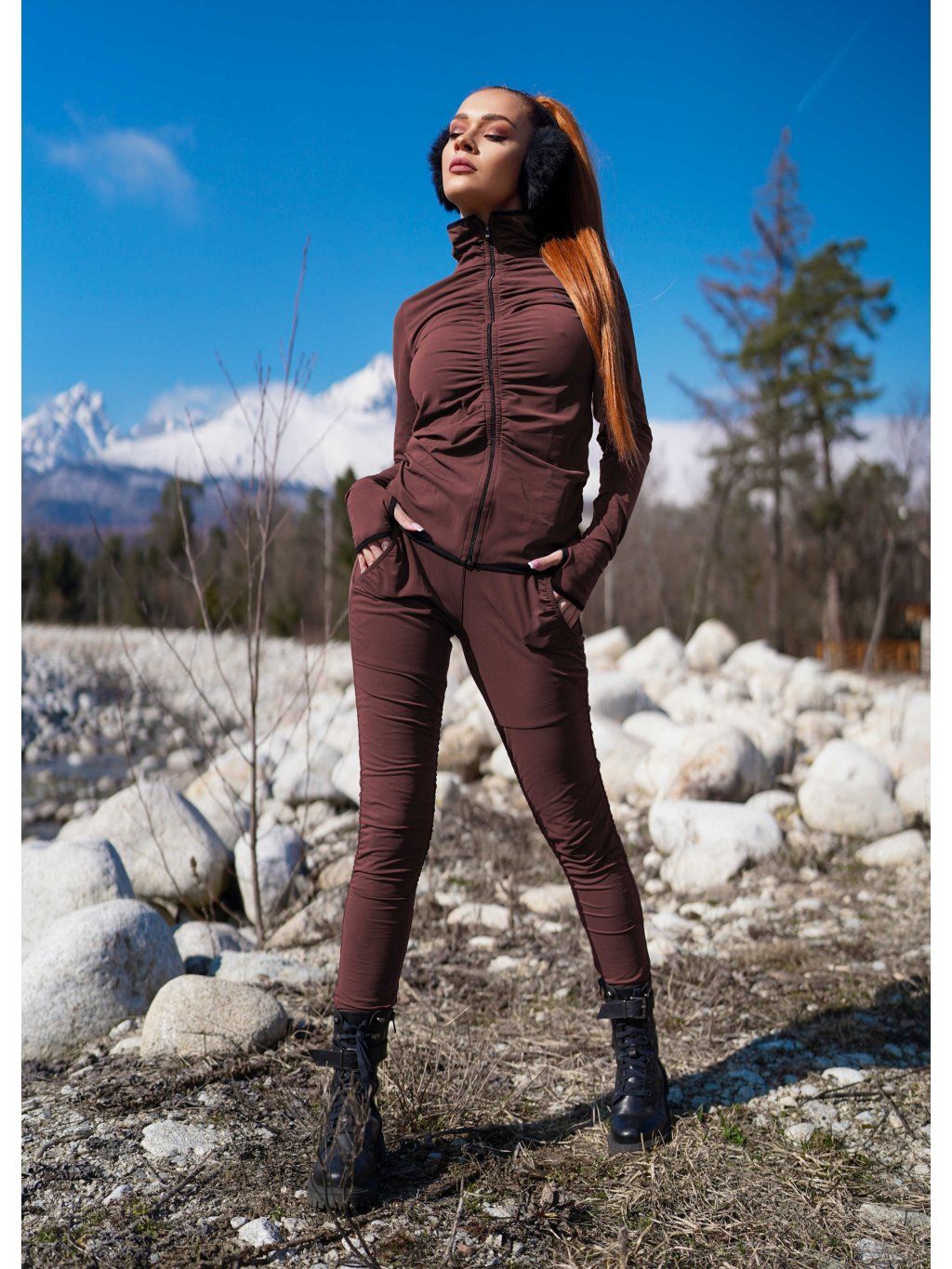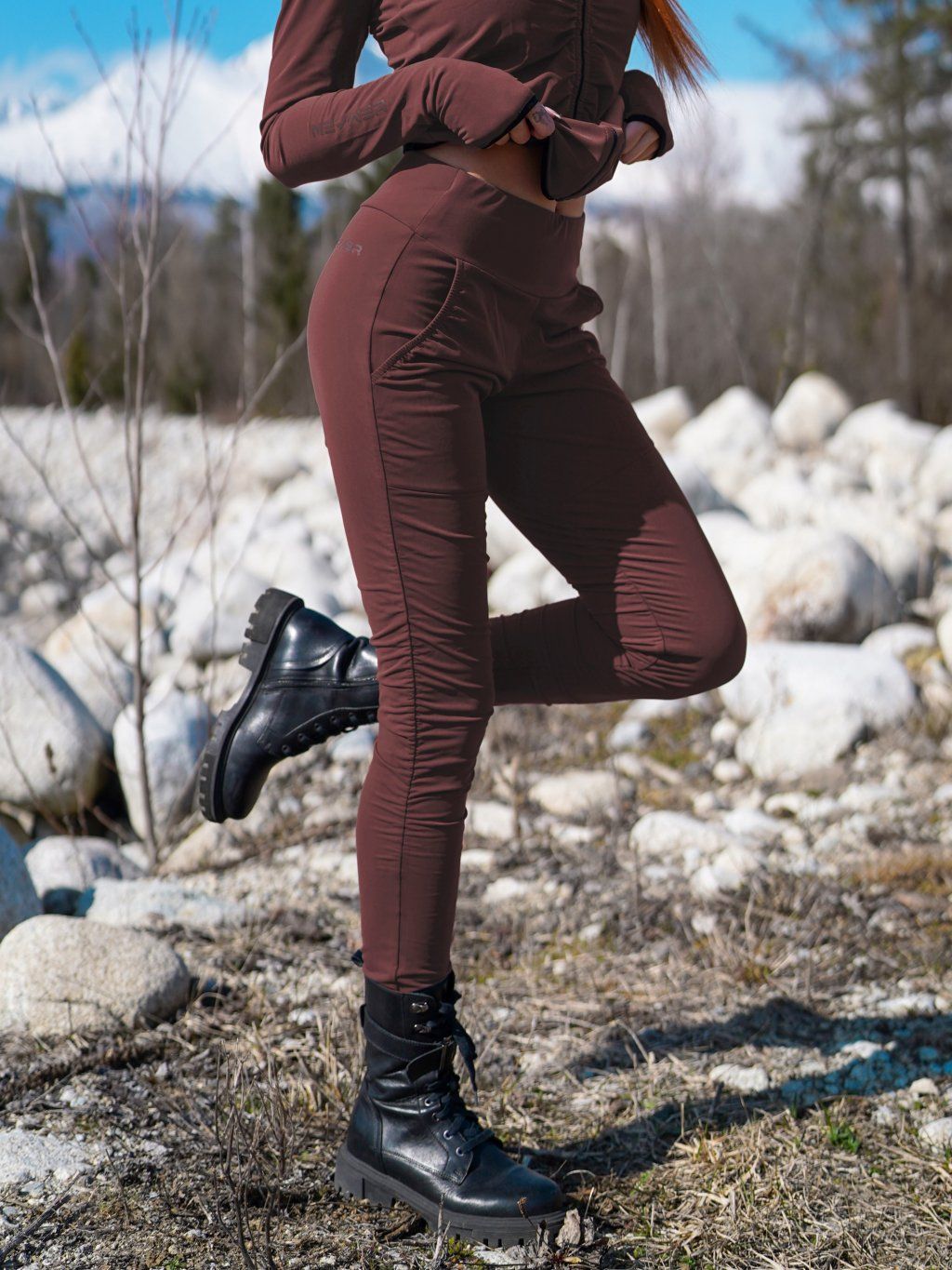Dámské jemně zateplené funkční elastické sportovní kalhoty hnědé ZK723