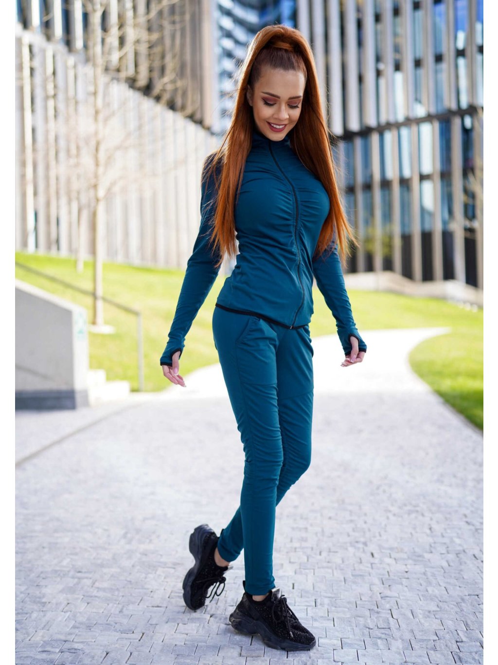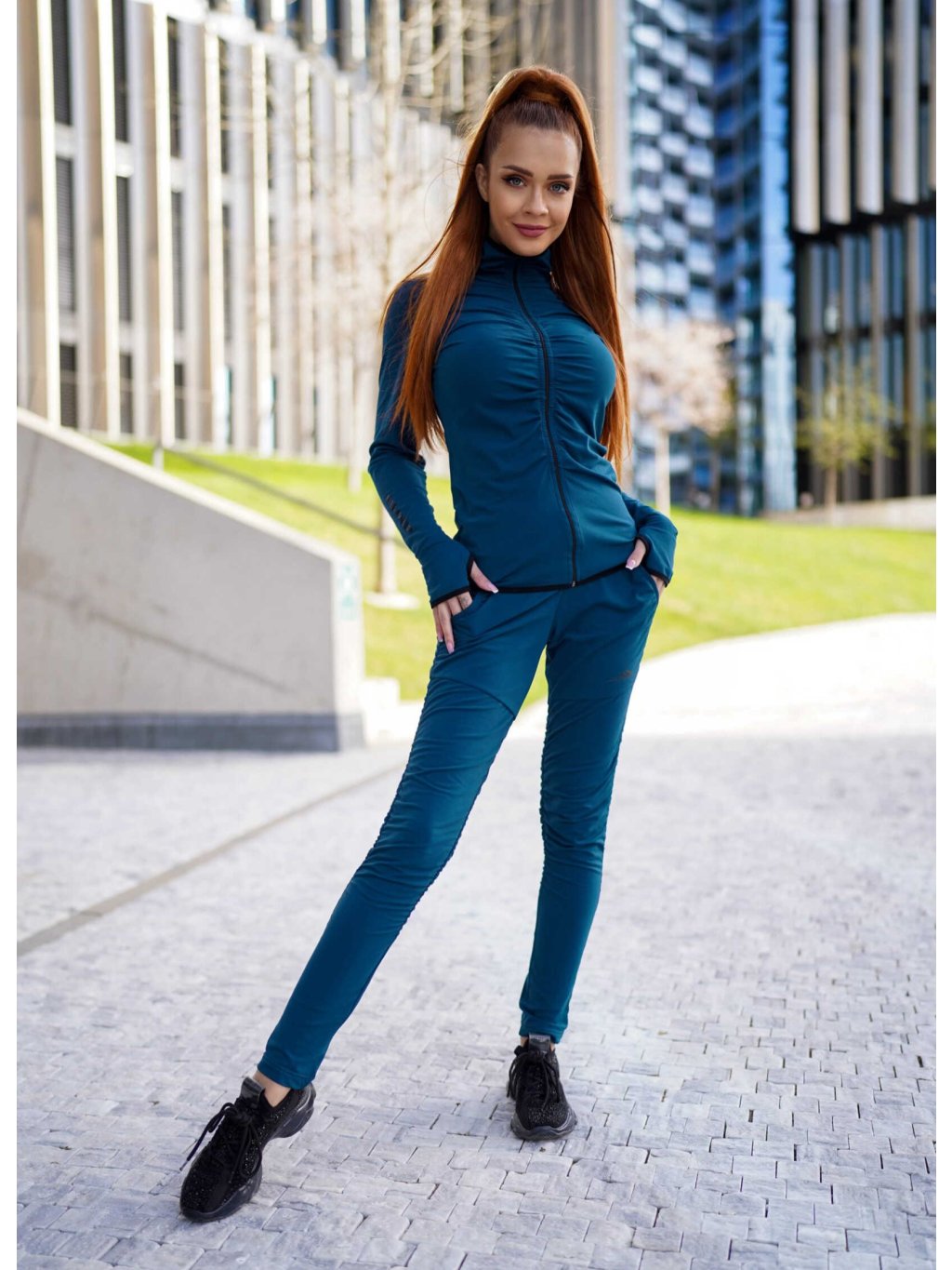 Dámské silně zateplené funkční elastické sportovní kalhoty petrolejové UK723