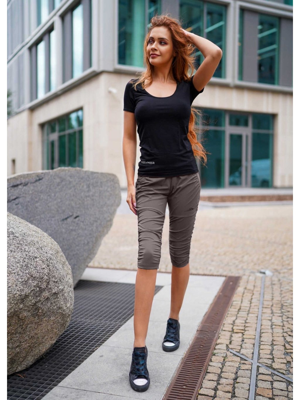 Dámske športové 3/4 riasené nohavice cappuccino EG723